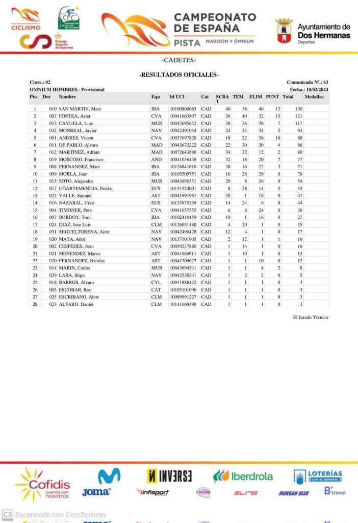 La Comunidad Valencia ha conquistado otro título más en la categoría cadete femenina de la mano de Noa Jiménez, que también ha sido la mejor de principio a fin en la competición. Jiménez ha sido 2º en el Scratch y la Eliminación y ha ganado la Tempo Race para alcanzar la Puntuación final con la victoria ya encarrilada. En esta última prueba del Omnium, la corredora de la Comunidad Valenciana se ha centrado en vigilar a sus principales adversarias por el título para terminar certificando con 122 puntos su victoria. El segundo puesto ha sido para María Rodríguez, con 107 puntos, y al tercer lugar del cajón se ha subido Gema Tornero, con 106 puntos.