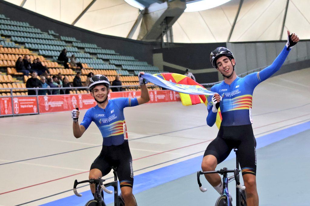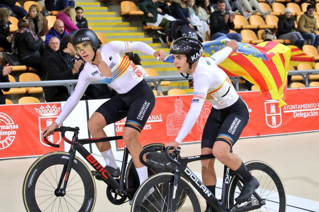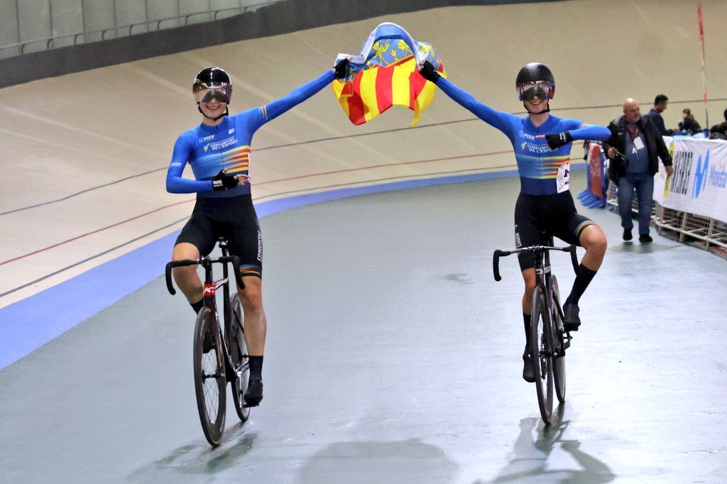 Los hermanos Bennassar, Francesc y Joan Martí, y Ainara Albert e Isabel Ferreres se han proclamado en la mañana de hoy campeones de España de Madison Élite en el Velodrómo de Dos Hermana, donde la Comunidad Valenciana se ha convertido en la gran protagonista y dominadora. El combinado valenciano ha arrasado conquistado cinco de los seis títulos que se han puesto en juego y obteniendo, además, tres dobletes. Una actuación portentosa que premia el talento de la Selección de la Comunidad Valenciana, así como la excelente labor preparatoria realizada en el Velódromo Lluis Puig.