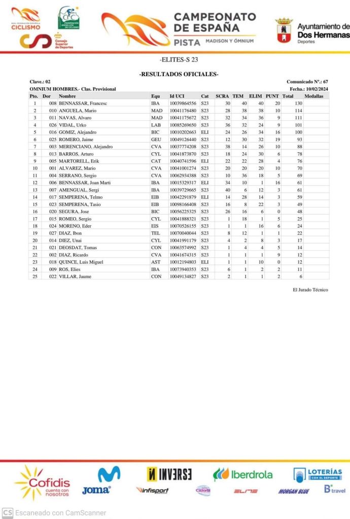 El domingo compitió en la Madison, junto a José Segura, y terminó sexto. Los hermanos Bennassar, Joan Martí y Francesc, fueron los vencedores. La plata se la llevaron Mario Anguela y Álvaro Navas. Y, el bronce, Jaime Romero y Urko Vidal. Alejandro Merenciano y Sergio Serrano, con la Selección de la FCCV, fueron cuartos.