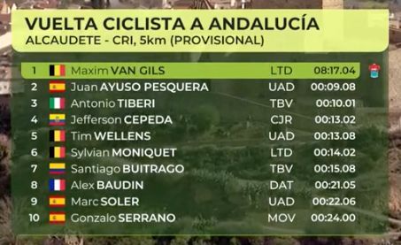 La Vuelta a Andalucía 2024 se ha visto completamente recortada debido de la huelga de los agricultores y, al final, sólo se ha disputado una pequeña contrarreloj. Maxim Van Gils se hizo con la victoria en el esfuerzo de cinco kilómetros, ganando efectivamente la clasificación general de la carrera.
