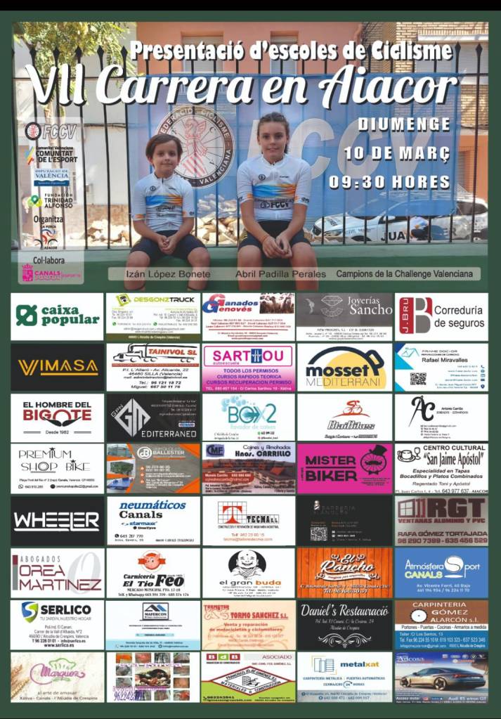 Este próximo domingo, día 25 de febrero, se presentará la Escuela de La Penya Ciclista La Forca de Aiacor en el salón Daniels de Alcudia de Crespins. Un acto que se iniciará a las 14.00 horas y al que asistirá el alcalde de Canals, Nacho Mira, y el presidente de la FCCV, Quique Gutiérrez, entre otras personalidades.