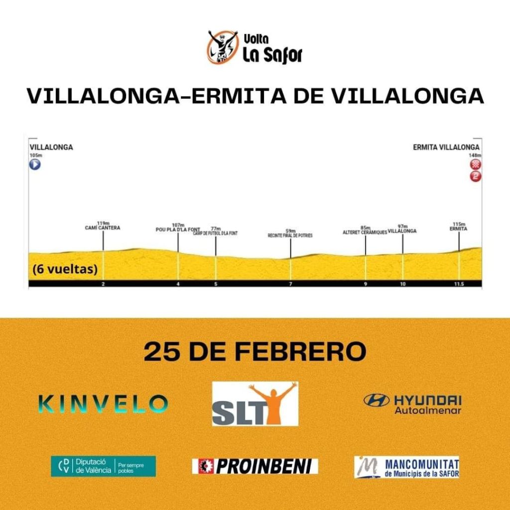 La tercera y última etapa de la Volta La Safor partirá a las 11 horas de Villalonja y finalizará en la Ermita de Villalonja, el domingo, día 25 de febrero. El pelotón afrontará un circuito al que se darán seis vueltas. Vicent Perales es el líder de la prueba tras la disputa de la segunda jornada de la Volta a La Safor. Perales es el mejor M40A; Sánchez lidera la clasificación de los M40B; Eduardo Garrigues, la de los M30 A; Juan Castellar, la de los M30B; Fernando Gimeno, la de los M50A; Javier Álvarez, de los M50B; Pascual Orengo Malonda, de los M60A. Noelia Sebastiá, en la primera fémina. También domina en M30A. Saida Perea es la mejor M30B; María José Vaño comanda la clasificación de los M40A; Elena Escobar, la de las M50A; Rima Gramaliauskiene, la de las M60A. El Hyundai es el mejor equipo y José Sánchez domina en la montaña, tras ganar hoy dicho premio.