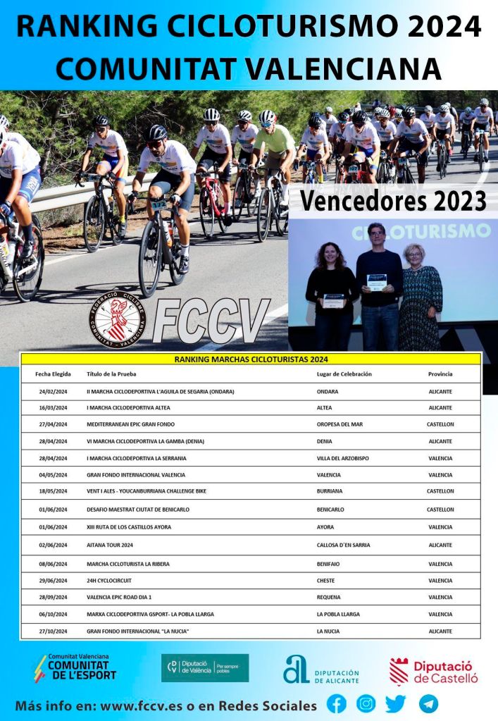En total son 15 pruebas en el Ranking Cicloturismo 2024 CV: