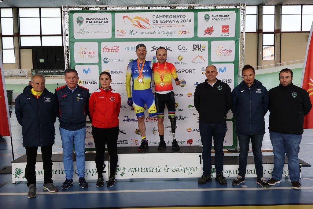 El tándem formado por Inma Martínez y Melisa Gómiz, del Hyundai Koryo Car Dstrel, regresaron del Campeonato de España de Pista para Paralímpicos con cuatro medallas de oro: En el KM Clase B, Persecución Individual, 200 Metros y Velocidad por Equipos. Un buen balance en un exigente fin de semana con el que han iniciado un nuevo ejercicio en el que combinan la pista y la carretera. De hecho, este próximo fin de semana regresan a la ruta para disputar en Cáceres la Extremadura European Paracycling Cup. El Hyundai también ha sumado otras once medallas, siete de oro (Ricardo Tem, siete. Una de ellas en Velocidad por Equipos con Jorge Orejón y Pablo Jamarillo); y cuatro de bronce, con Orejón. Además, Alejandro Gómiz, junto a Joan Sansó, de Baleares, se colgó la plata en la Persecución de tándem Clase MB, y repitió metal en el Kilómetro Tándem.