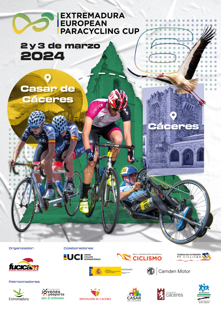 La Extremadura European Paracycling Cup, una de las pruebas más relevantes del calendario nacional de Ciclismo Paralímpico, vivirá una nueva edición este próximo fin de semana, 2 y 3 de marzo. La carrera, organizada por FUCICAM y que contará con el patrocinio de la Junta de Extremadura, la Diputación de Cáceres y los Ayuntamientos de Casar de Cáceres y Cáceres, disfrutará de dos jornadas de competición: la primera de ellas estará reservada para una prueba en ruta y la segunda a una contrarreloj individual. Además, quienes participen en ambas jornadas optarán a una clasificación final que premiará al más fuerte de cada clase.