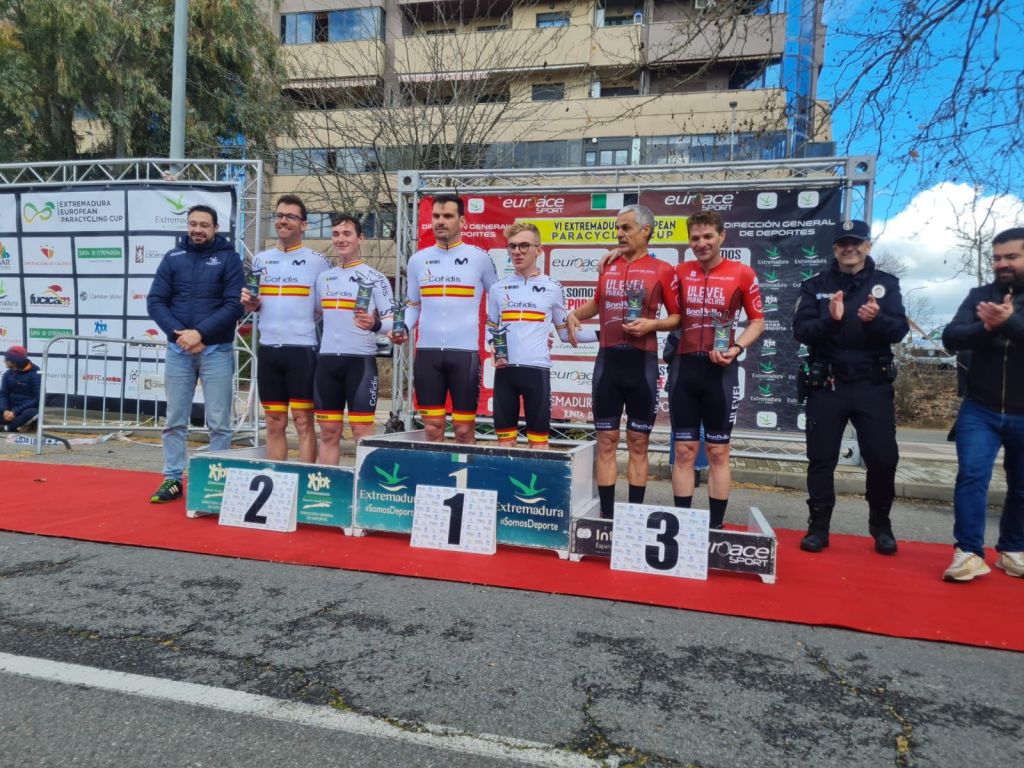 Nacho Rodrigo y Óscar Hernández, con el maillot de la Selección Española, han sido los ganadores de la prueba en contrarreloj de la Extremadura European Paracycling Cup, que se ha disputado hoy Cáceres. Ayer ganaron la prueba en ruta. Rodrigo y Hernández han tenido a su lado en el podio a los compañeros de selección Leonardo Pedrero y Abrahan del Caño. La tercera plaza ha sido para el dúo del Ulevel Paracycling Ontinyent formado por Javier Vaquero-Julio Rodrigo. En féminas, tándem, triunfo de Inma Martínez y Melisa Gómiz.