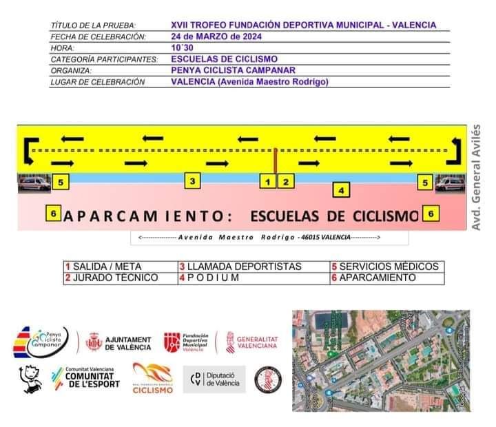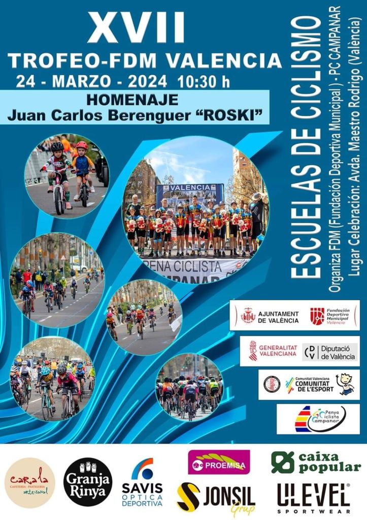 El próximo 24-3-2024 se celebrará el XVII Trofeo FDM-València, prueba para la categoría de Escuelas de Ciclismo que tendrá lugar en la Avenida Maestro Rodrigo de Campanar. Las pre-inscripción ya puede efectuarse a través de la página web de la FCCV desde el pasado viernes y hasta el 21 de marzo de 2024, a las 20’00 horas.