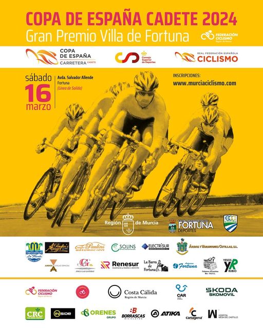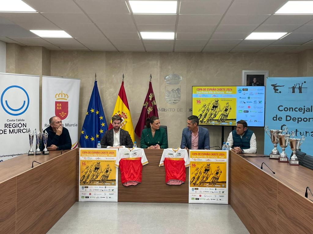 Hoy se ha presentado el Gran Premio Villa de Fortuna 2024, segunda prueba puntuable de la Copa España Cadete que se inicia este domingo en Melilla. El acto, al que ha asistido Miguel Fernández, presidente de la FCRM, se ha celebrado en el Ayuntamiento de Fortuna. Serán 57,14 kilómetros con principio y final en la Avenida Salvador Allende de la localidad murciana. Lista de inscritos