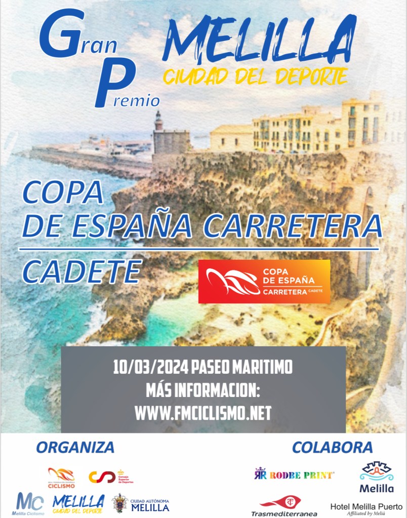 La Copa de España Cadete masculina de Carretera es una de las grandes novedades que trae consigo la temporada ciclista 2024 en el ámbito nacional. El Gran Premio Melilla Ciudad del Deporte, que se disputará el 10 de marzo, será el encargado de inaugurar este nuevo circuito nacional para esta caregoría. A esta prueba viajan el Esetec Pikolinos y el TBG Lithosport. Los ilicitanos competirán con Ishak Abderrahim, Óscar Morante, Víctor Sánchez, Jorge Rueda, Mauro Van Cauteren y Hugo García. Por su parte, el TBG estará con Jordi Peris, Albert García, Manuel Beltrán, Joan Folch, Daniel Ruiz y Nicolás Barrera. Televisión Melilla, a través de su web PlayMelilla, emitirá en directo la prueba.