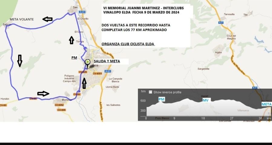 Este sábado, día 9 de marzo, se disputa en Elda el VI Memorial Juanmi Martínez. La séptima prueba del Interclubs Vinalopó dará comienzo a las 15 horas y contará con 77 kilómetros de recorrido. Se han preinscritos 174 corredores.
