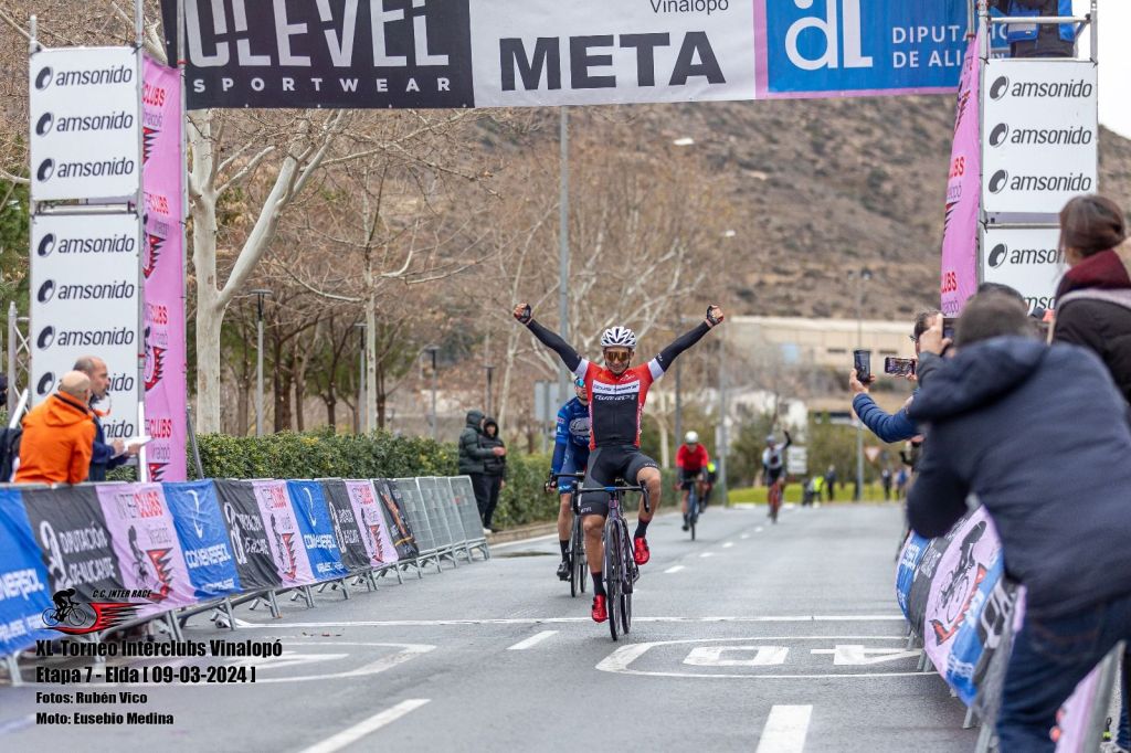 Julio Alberto Amores (Ciclos Sabater) se ha impuesto esta tarde en Elda en el VI Memorial Juanmi Martínez. La séptima prueba del Interclubs Vinalopó ha contado con 77 kilómetros de recorrido. Amores ha superado a Daniel Romero (Encacon) y Pablo Sánchez (Yourbike), que han entrado segundo y tercero en meta. Pedro Antonio Martínez (Yourbike) ha sido el mejor élite; Antonio Luis Soler (Tenerife) se ha impuesto en Sub 23; Amores, en M30; Franciso García (Gobik Factory), en M40; Juan Carlos Botella (Isotech-Dama); Antonio Torres (Aquan), en M60; y Mikha Podluzhnnyy (Vino Tinto), en Júnior.