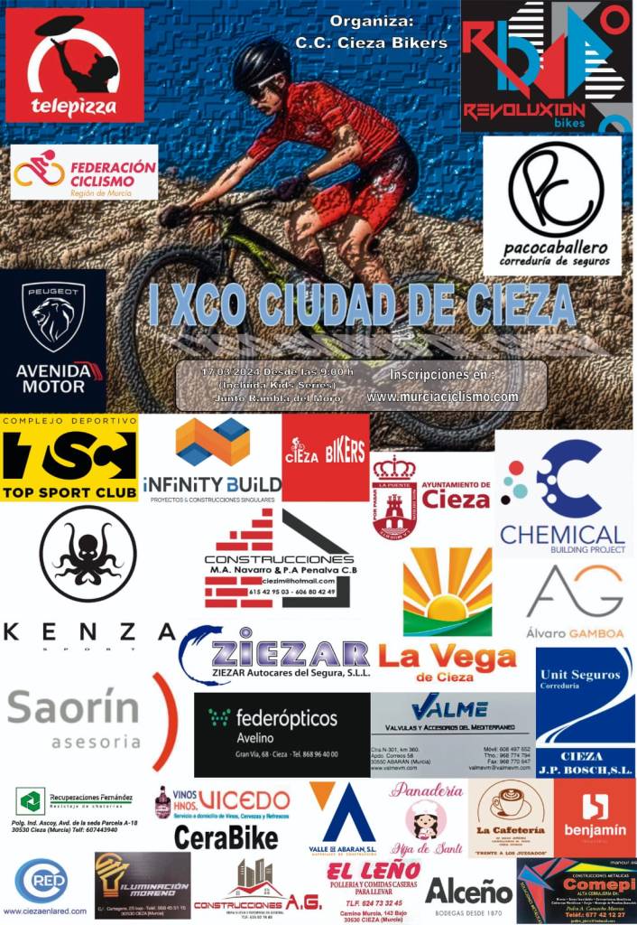 El domingo se celebra el I XCO Ciudad de Cieza. La prueba, organizada por la Escuela de Ciclismo Cieza Bikers, es puntuable para el Campeonato Regional y tendrá como escenario el circuito que está situado junto a la Rambla del Moro. Dará comienzo a las 9 horas con las escuelas en un circuito preparado a su categoría y a la técnica que tienen a estas edades. A partir de las 11:00h competirán el resto de disciplinas en dos mangas, en la primera entran máster y chicas y en la segunda, que será a la 12:30h, compiten élite, sub 23 y máster 30 en un circuito de 4,5 kilómetros situado junto al Morrón en la rambla del Moro. Inscritos