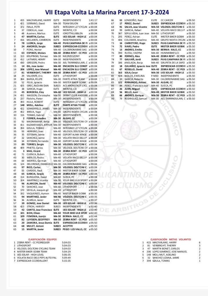 Etapa 7. Parcent. 17 de marzo. Clasificaciones