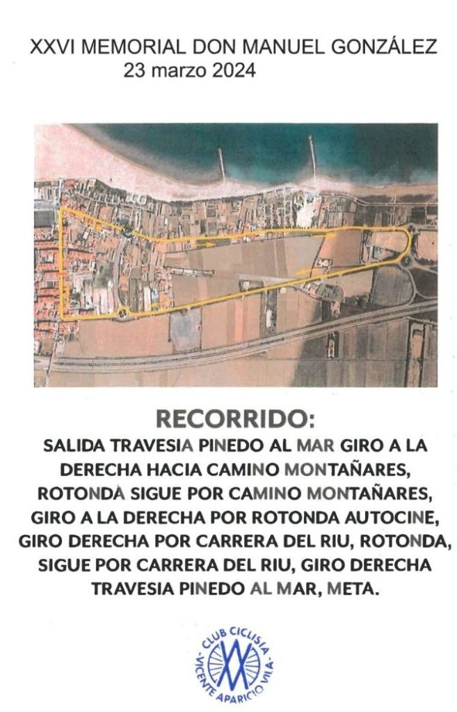 Doble cita de ciclismo el sábado, día 23 de marzo, en Pinedo, organizada por el Club Ciclista Vicente Aparicio Vila y la Penya Ciclista Pinedo. A las nueve de la mañana tendrá lugar el XIII del Trofeo Social de Pinedo, competicón para las categorías máster 30, 40, 50 y 60, además de Sub21 y Sub23. El trazado tendrá lugar en un circuito hasta alcanzar los 60 kilómetros. Lista de inscritos.