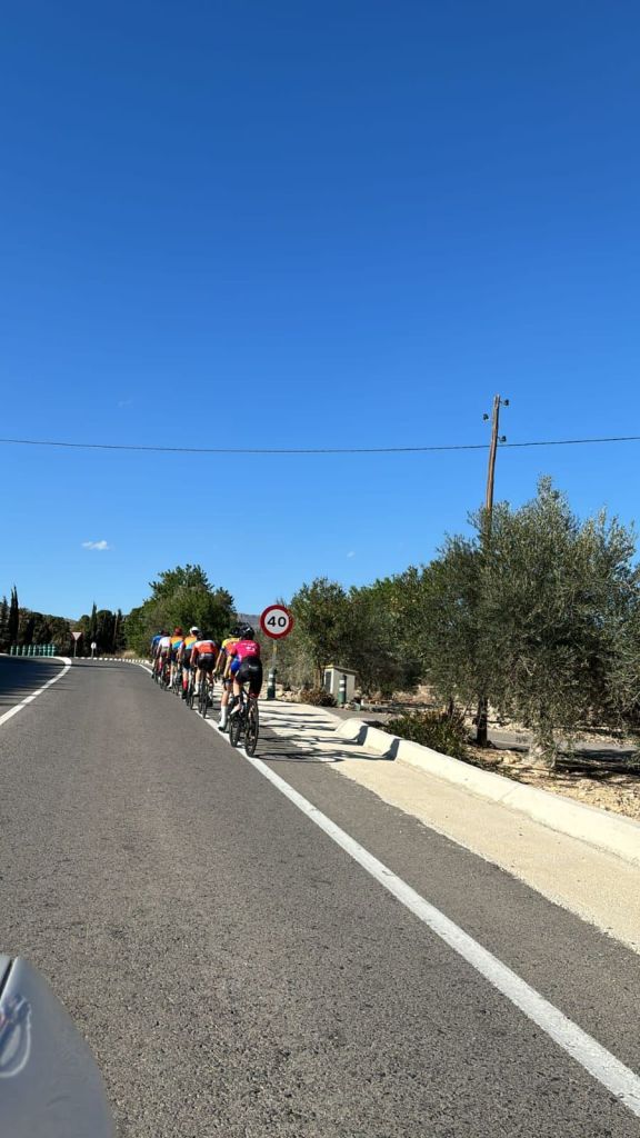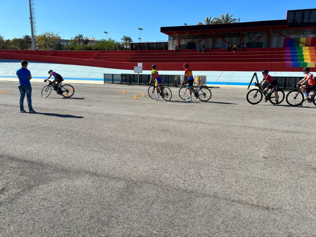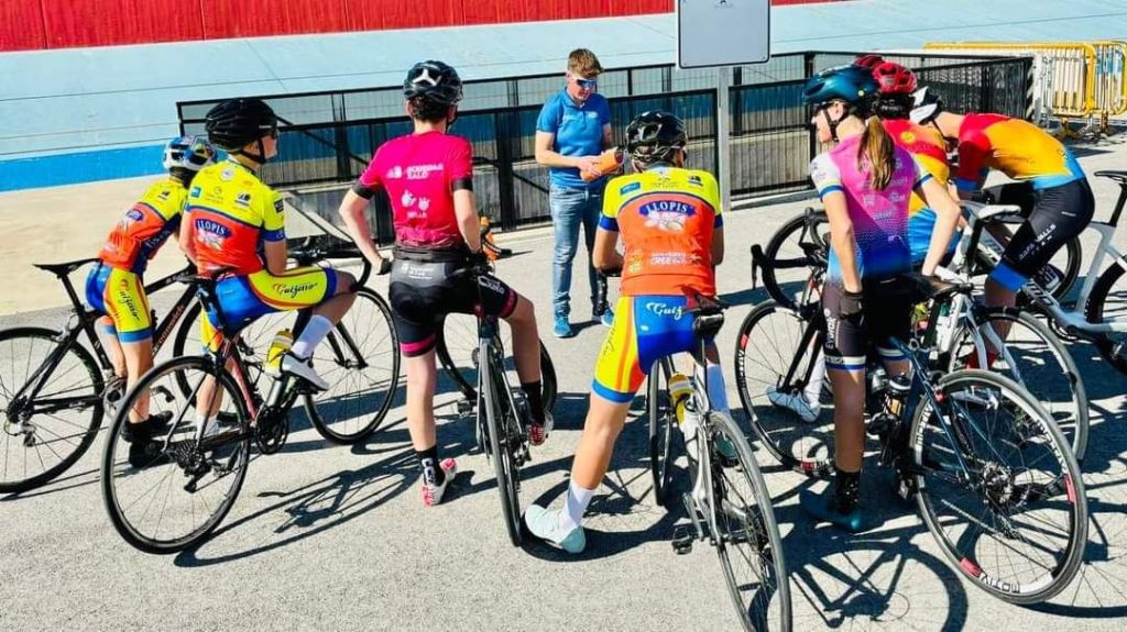 «Hemos rodado en el velódromo unas series de calentamiento, después un poco de gymkhana, y una ruta de unos 25km. Nos ha cedido el velódromo el club ciclista Novelda, y me han acompañado Juanlu Navarro, el director deportivo del club, que ha ido en bici con el grupo, y Pascual Orengo, de auxiliar conmigo en el coche», explica Ariadna.