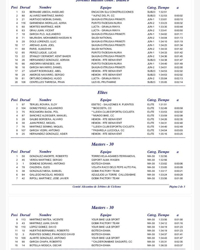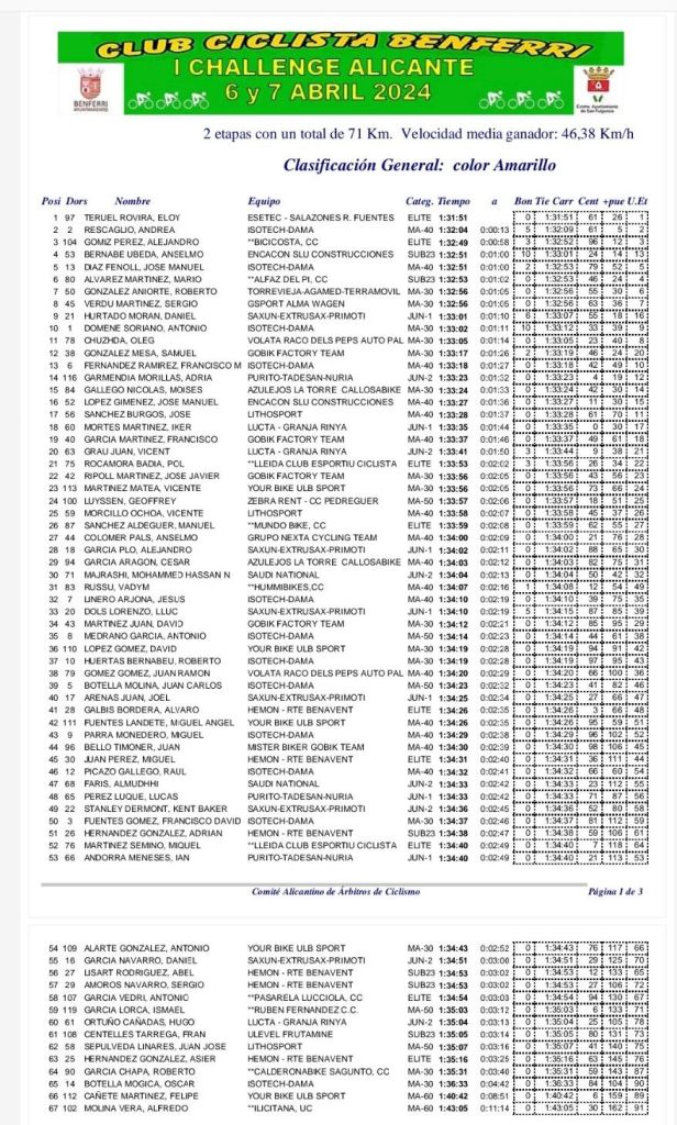 Etapa 1. Día 6 de abril. San Fulgencio-San Fulgencio. Clasificaciones