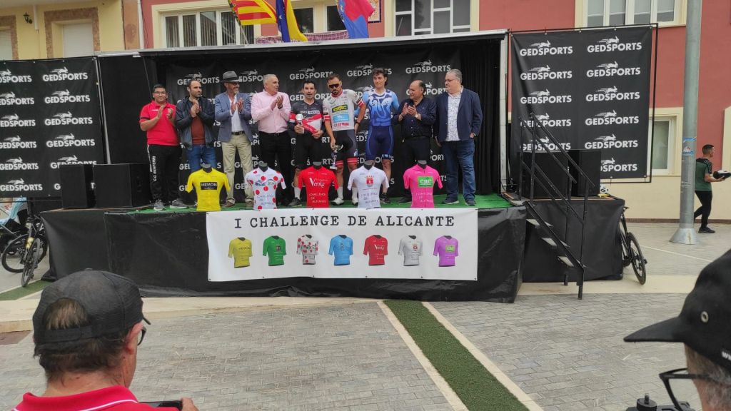 Andres Rescaglio lleva el maillot de la regularidad; Antonio Domene el de la montaña y metas volantes; Gómiz, el de primer alicantino; y Anselmo Bernabé, el de los jóvenes.