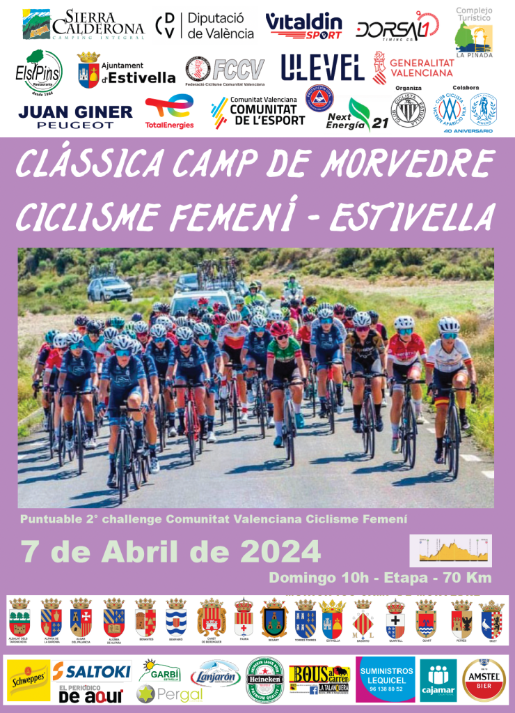 Hoy domingo, a las 10:00 horas dará comienzo la segunda prueba de la II Challenge «FanSport» de Féminas de la Comunitat Valenciana, en la localidad de Estivella y organizada por el Club Ciclista Estivella, siendo el director/organizador José Ramón Mocholí Aznar.