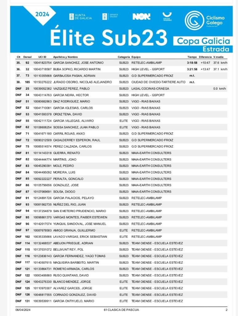 Ramón Fernández (Cortizo) conquista en solitario la Clásica de Pascua disputada en Padrón. Dominio del Cortizo con Marc Torres, segundo, y Alejandro Paz, tercero. El alicantino Andrés Ripoll (High Level Gsport), que ha estado en una escapada, logra el maillot de los Sprins Especiales. Samuel Florez (Cortizo) se ha llevado la Montaña; Ramón Fernández, las Metas Volantes. El Cortizo ha sido la mejor escuadra. Tomás Miralles (Rías Baixas) también ha sido protagonista en una de las escapadas de la jornada.
