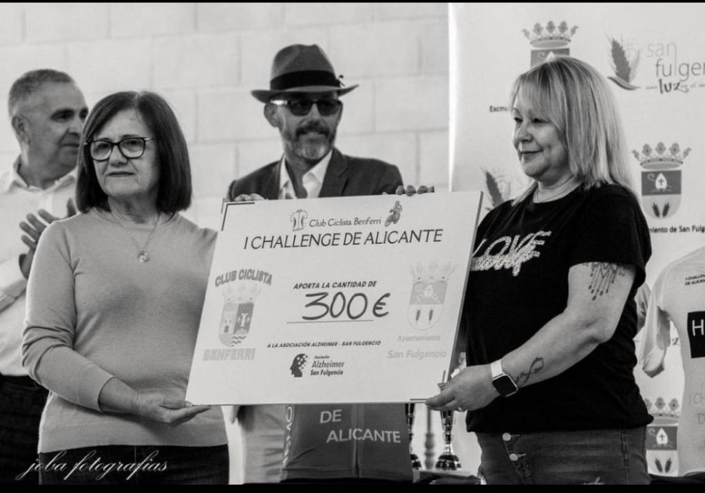 La Challenge de Alicante también ha tenido su apartado solidario. Una parte de la inscripción ha ido destinado, 300 euros, a la Fundación «Los pasos de Nora», y, otra, la misma cantidad, a la Asociación de Ayuda a los enfermos de Alzheimer.