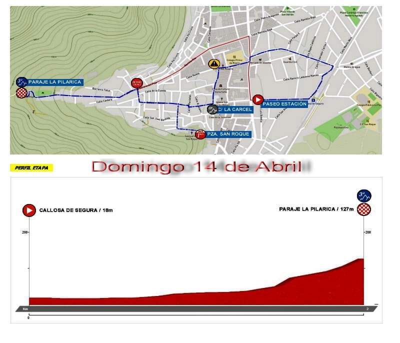Etapa 3. 14 de abril. Callosa del Segura-Paraje La Pilarica. 2,5Km. CRI. 10.30h.