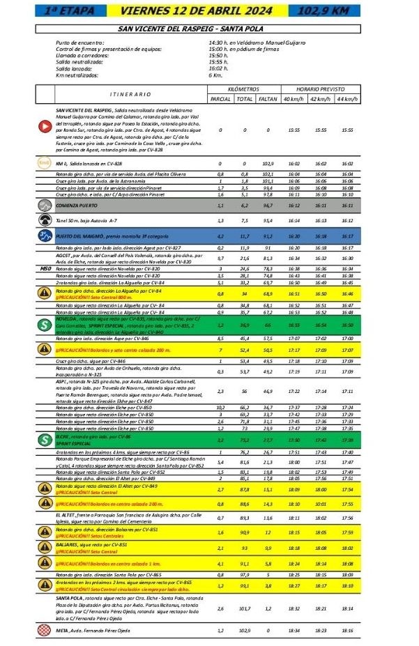 La 𝐗𝐗𝐕𝐈 𝐂𝐡𝐚𝐥𝐥𝐞𝐧𝐠𝐞 𝐕𝐮𝐞𝐥𝐭𝐚 𝐂𝐢𝐜𝐥𝐢𝐬𝐭𝐚 𝐚 𝐀𝐥𝐢𝐜𝐚𝐧𝐭𝐞 se disputa del 12 al 14 de abril. La ronda contará con tres etapas. La primera será hoy viernes 12, con salida desde el Velódromo Manuel Guijarro de San Vicente del Raspeig y un recorrido de 103,6 kilómetros. La carrera afrontará de salida la subida al puerto de montaña del Maigmó de 3ª categoría, antes de continuar por las localidades de Agost, Novelda, Aspe, Elche y El Altet, para finalizar en Santa Pola, donde la meta estará ubicada en la Avenida Fernando Pérez Ojeda, justo frente al emblemático puerto pesquero de la localidad.
