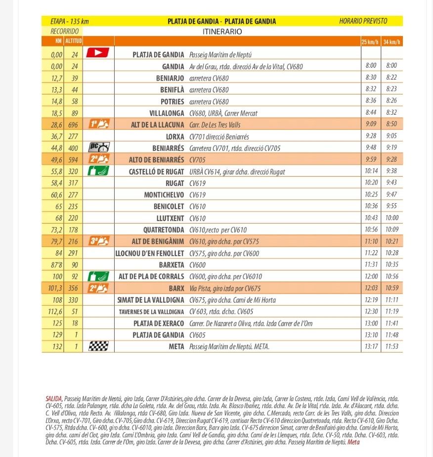 La prueba transcurre por bellos parajes, como el puerto de la Llacuna que ofrece unas vistas impresionantes que nos harán olvidar las rampas duras de este puerto que hemos tenido que realizar para alcanzar esta primera cota. La segunda cota del día la encontraremos en Beniarrés, puerto en el que los participantes podrán batirse en tiempo ya que está cronometrado como en las ediciones anteriores. La tercera y la mas llevadera, será el puerto de Benigànim. El cuarto y último puerto es el Alto de Simat. Todo esto por carreteras poco transitadas.