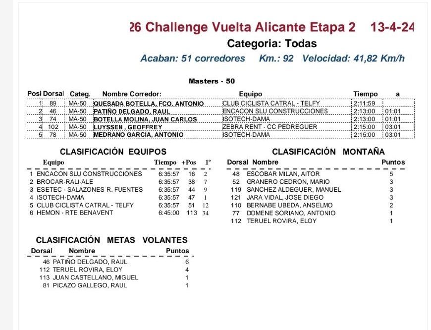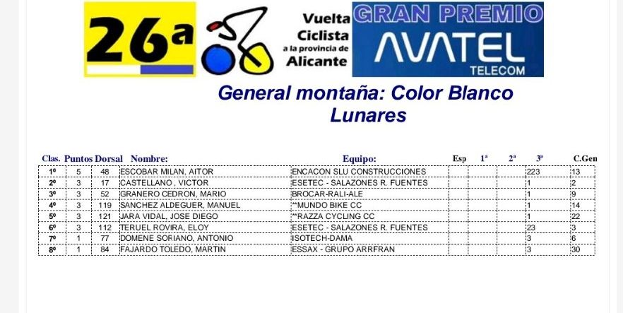 Antonio Domene es el mejor alicantino; Eloy Teruel domina las Metas Volantes; Aitor Escobar, la Montaña; y el Esetec Pikolinos comanda la clasificación por equipo.