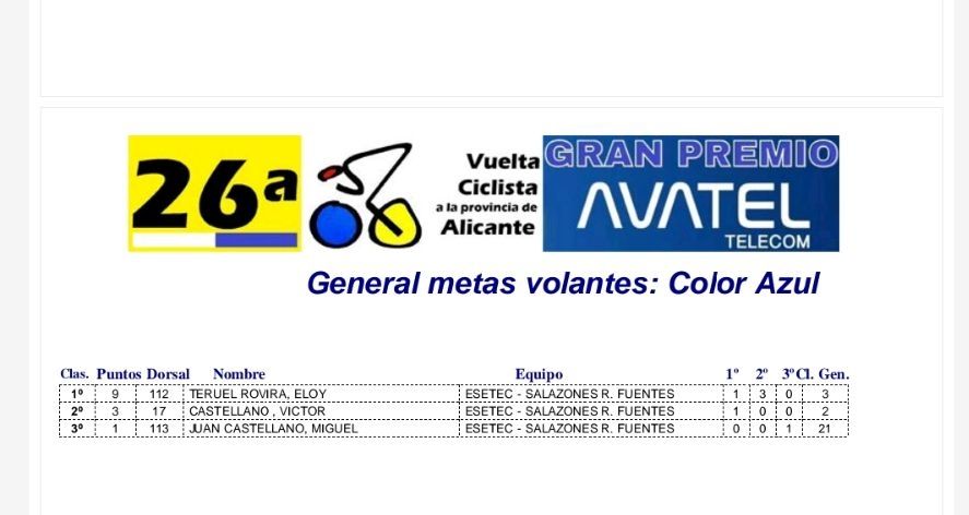 Fotos y clasificaciones. Ciclismo Levante