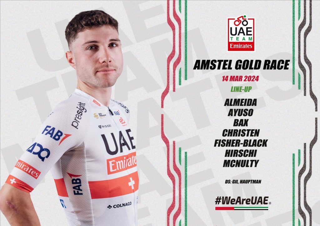 El equipo del UAE para la 58 edición de la clásica holandesa será el compuesto por Juan Ayuso, Marc Hirschi, Joao Almeida, Sjoerd Bax, Jan Christen, Finn Fisher Black y Brandon McNulty.