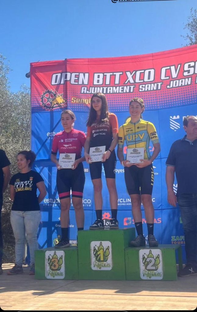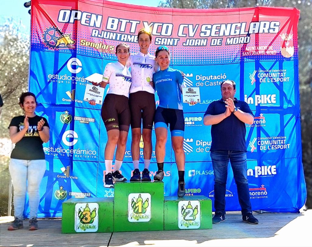 En féminas, victoria de Elena Lloret (Gsport Cycling), por delante de Laia Alborch (Fante Atika) y de María Mercedes Villanueva (Cudol), tercera.