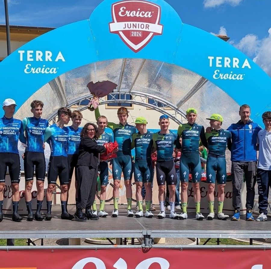 Héctor Álvarez, Adriá Pericas, Javier Cubillas, Roger Pareta, Enrique Maranchón e Iker Gómez han marcado el sexto mejor tiempo en la CRE inaugural de la Eroica Juniores Nations’ Cup, con el maillot de la Selección Española, a 48″ del Grenke-Auto Eder, que ha sido el más rápido en la contrarreloj por equipos disputada entre Punta Ala y Castiglione della Pescaia, de 22,5 kilómetros.