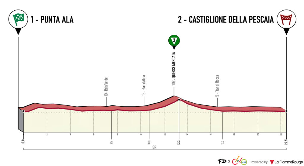18/04 – Et. 1A: Punta Ala – Castiglione della Pescaia (22,5 km CRE)