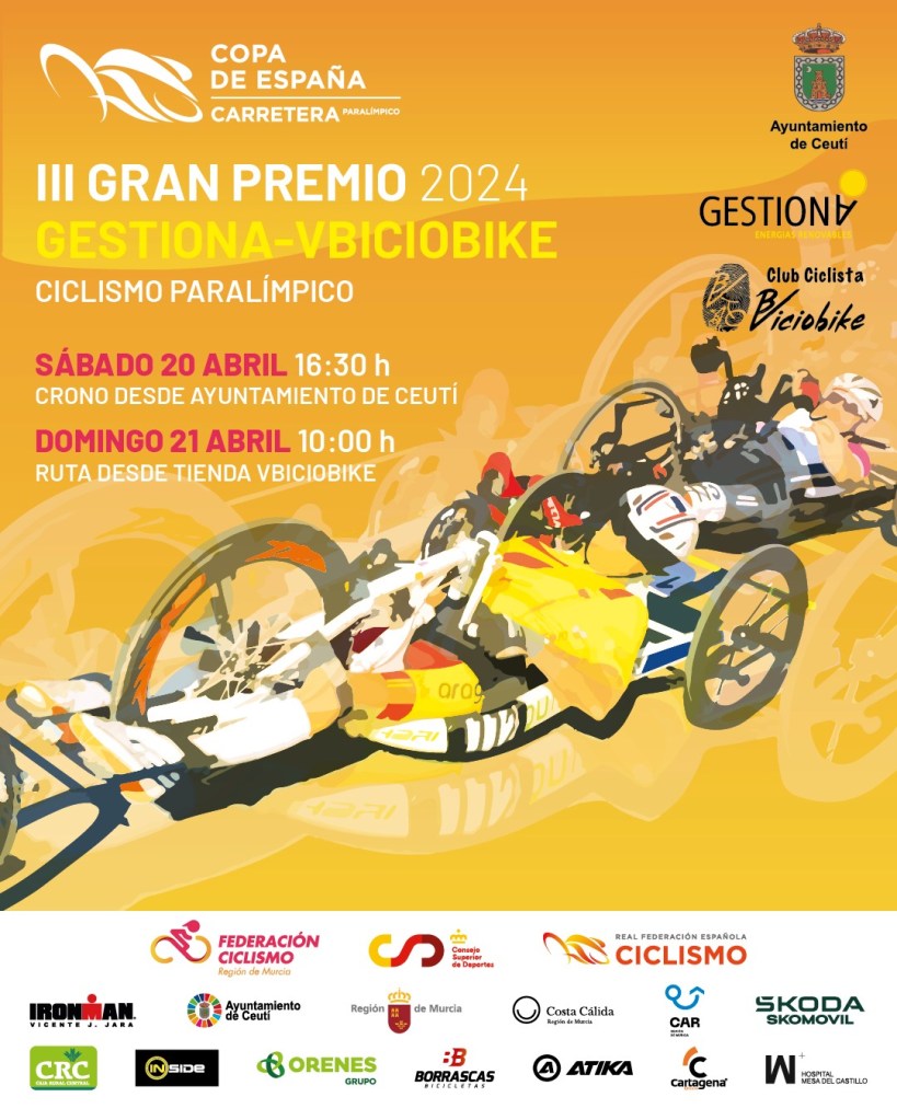 El domingo 21, con motivo del III Gran Premio Gestiona VBiciobikeRuta, disfrutarán de una prueba en línea que se desarrollará en torno a un circuito de tres kilómetros por las calles de Ceutí sobre el que cada una de las clases rodará durante 60 minutos más una vuelta. La competición se organizará en dos carreras; una primera, que se celebrará desde las 10:00 h., en la que saldrán los handbikes y triciclos; mientras que los tándems y bicicletas correrán a partir de las 11:30 h.