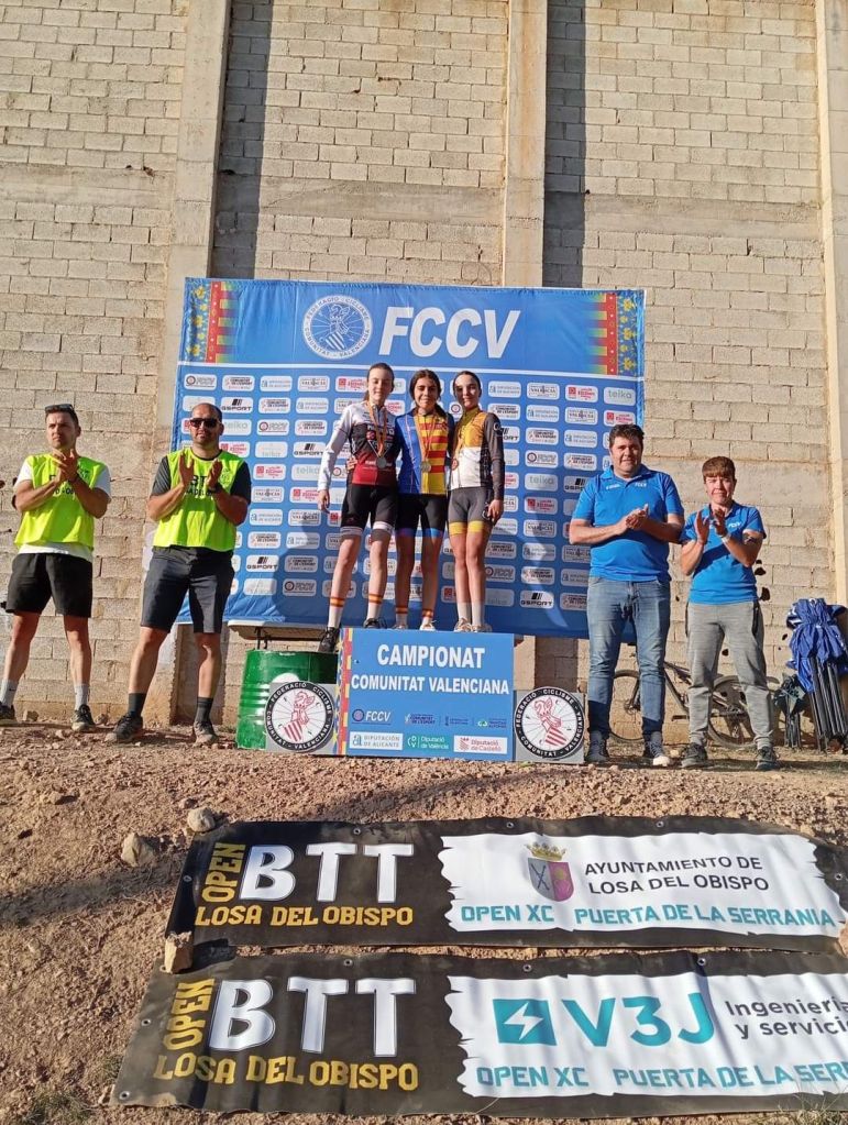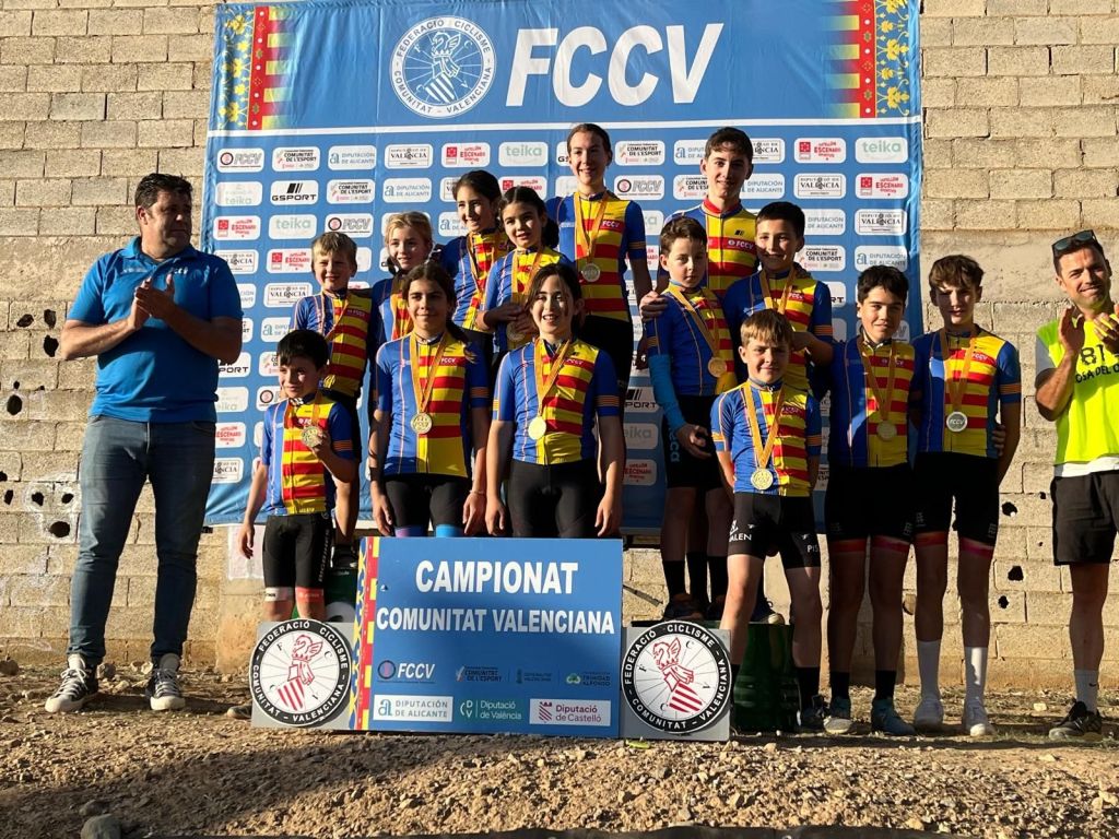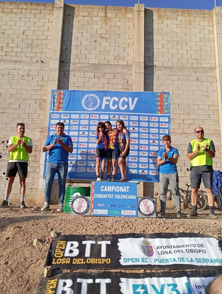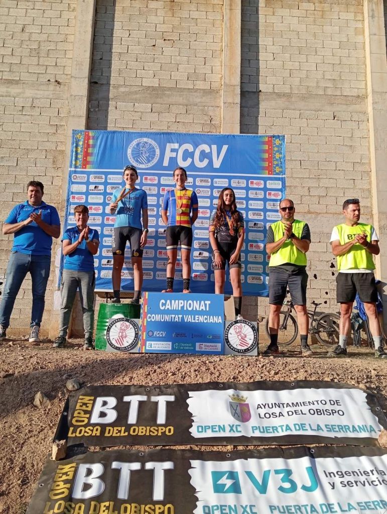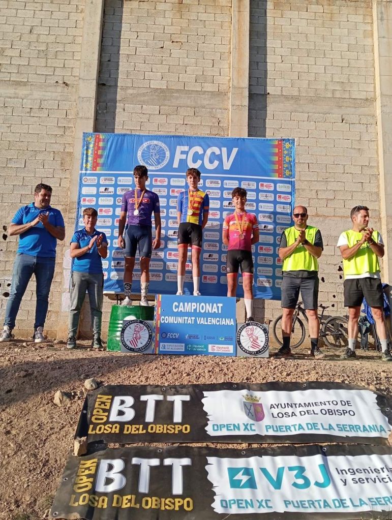 Losa del Obispo ha repartido hoy los títulos autonómicos escolares en el Campeonato de la Comunidad Valenciana BTT-XC Escuelas de Ciclismo que se ha disputado hoy con la presencia de mas de 200 niños. Marc Marín (Orbel) y Vega Morales (AM Sonido) se han impuesto en Alevines 1; Javier Delegido (Citroen Marco) y Valeria Coloma (AM Sonido), en Alevines 2; Martín Fernández (Vall d’Uixó) y Valeria Vidal (Aitana), en Principiantes 1; Álex Moreno (UC Villar) y Elia Ruiz (Costa Azahar), en Principiantes 2; David Chenoll (Big Bikes) y Cristina Iñesta (Crevillent), en Promesas 1; Guillem Verdú (La Vila) y Iria Baquero (La Vila), en Promesas 2; Gonzalo Muñoz (Citroen Marcos) y Ainhoa Cano (Aitana), en Infantiles 1; y Albert Beltrán (Grup Dos Rodes) y Andriana Segura (Almoradí), en Infantiles 2.