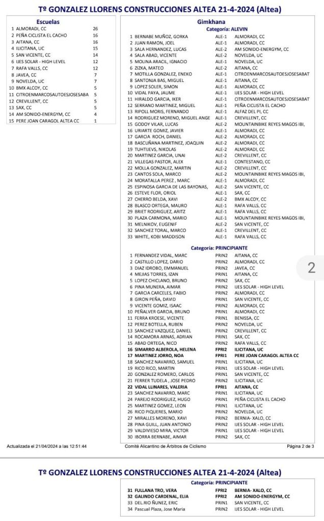 La Escuela del CC Almoradí se ha impuesto en el Trofeu González Llorens Hermanos Construcciones de Ciclismo Escolar, quinta prueba de la Challenge de Escuelas de la Provincia de Alicante, disputado en Altea. La Peña Ciclista El Cacho ha sido segunda y el Aitana, tercera.