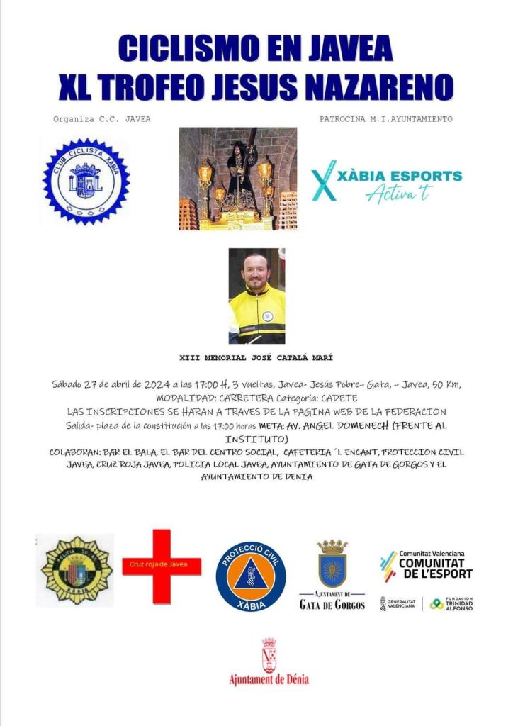 Este sábado, 27 de abril, se disputa en Xàbia la 40ª edición del Trofeo Jesus Nazareno-XIII Memorial José Catalá Marí para corredores, primera prueba puntuable de la Challenge CV-Gsport para la citada categoría. La prueba, organizada por el Club Ciclista Jávea, comenzará a las 16:00 horas desde la Plaza Constitución de la localidad alicantina y consta de 50 kilómetros. Se darán tres vueltas a este circuito: Xàbia, Jesús Pobre, Gata de Gorgos y Xàbia.