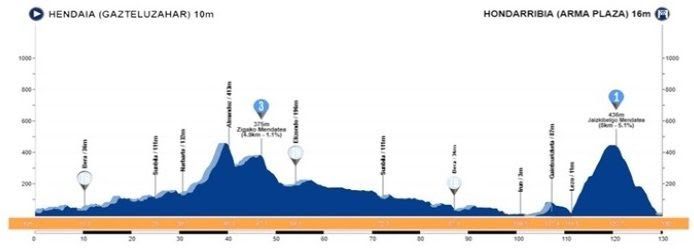 SEGUNDA ETAPA (sábado 27). Hendaia-Hondarribia. 133 kilómetros. 14.45 horas. El pelotón volverá a remontar el Bidasoa, girando en esta ocasión tras coronar el Alto de Ziga. Ya de regreso en Gipuzkoa, los ciclistas accederán desde Gaintxurizketa al pie de Jaizkibel, con meta posterior en la calle Mayor de Hondarribia.