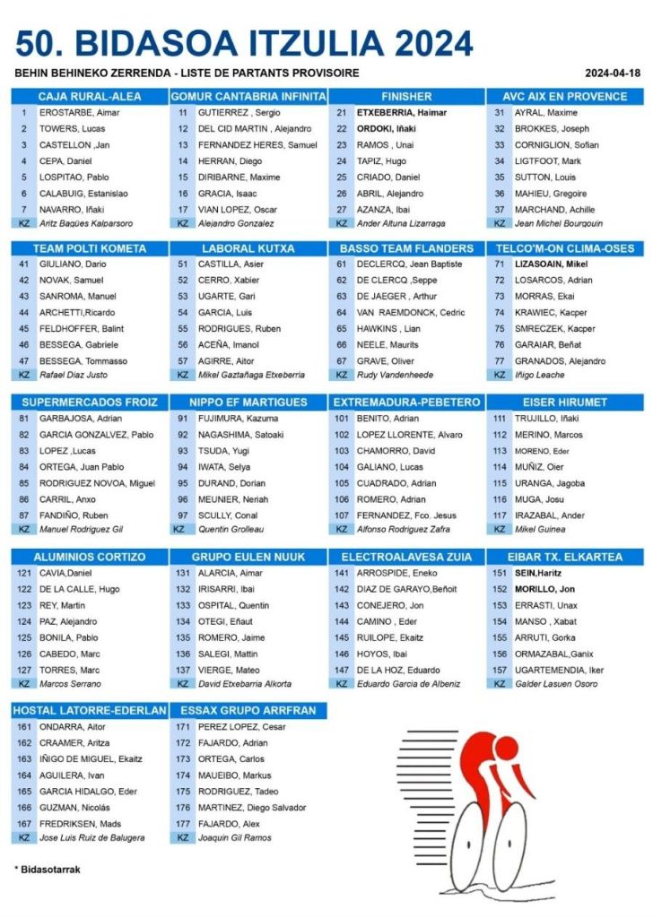 En la salida estarán, el Equipo Essax-Grupo Arfran, Dani Cepa (Filial Caja Rural-Alea) y Marc Cabezo (Cortizo) con la intención de repetir el triunfo de Jaume Guardeño en la edición de 2023. Los sajeños acuden con César Pérez, Adrián Fajardo, Carlos Ortega, Marcos Maueibo, Tadeo Rodríguez, Diego Martínez y Álex Fajardo.