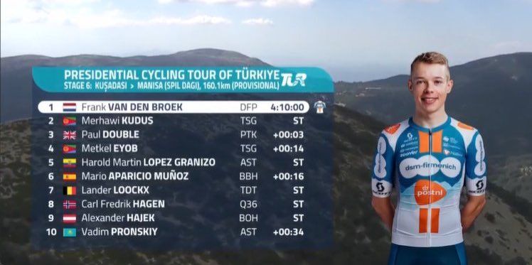 Frank van den Broek ha ganado la etapa reina del Tour de Turquía. En la última subida a Spil, el holandés del DSM-Firmenich fue el más rápido que sus compañeros de escapada. Merhawi Kudus (Terengganu Cycling Team) quedó segundo y Paul Double, compañero de Manuel Peñalver en el Team Polti Kometa, tercero. Van den Broek es también el nuevo líder de la clasificación.