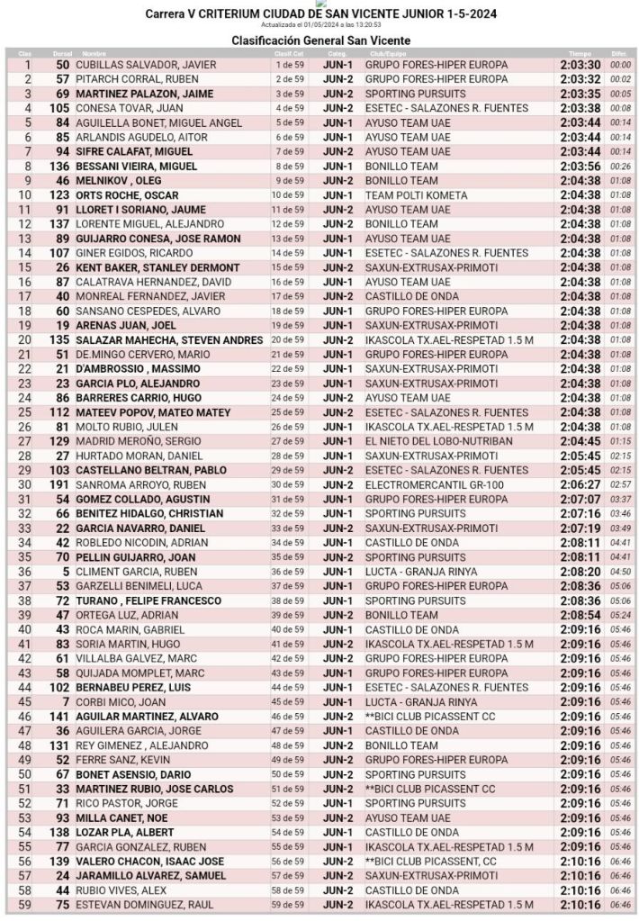 1 de mayo. San Vicente del Raspeig. Clasificaciones