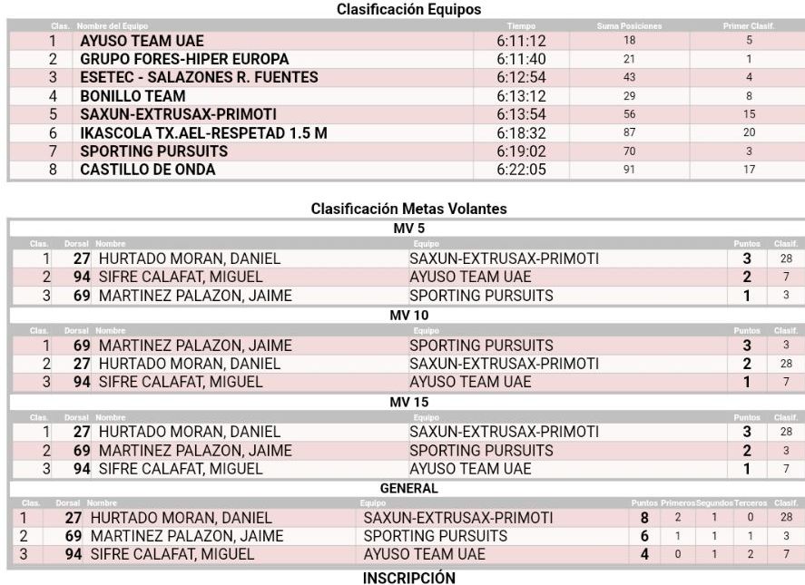 13 de abril. Picassent. Clasificaciones