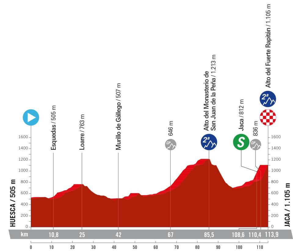 Este jueves, La Vuelta Femenina by Carrefour.es continuará con una quinta etapa que traerá consigo la primera de las tres llegadas en alto de esta edición: el Alto del Fuerte Rapitán de Jaca esperará a las ciclistas tras 113,9 kilómetros de etapa con salida desde Huesca y paso por el Alto del Monasterio de San Juan de la Peña, ambos de 2ª categoría, que debe definir la clasificación general entre las mejores escaladoras después de esta jornada de alta velocidad.
