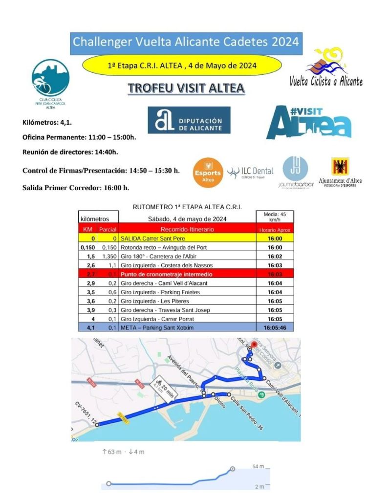 ➡️4 de mayo. Altea. 4,1 kms CRI. 16h.