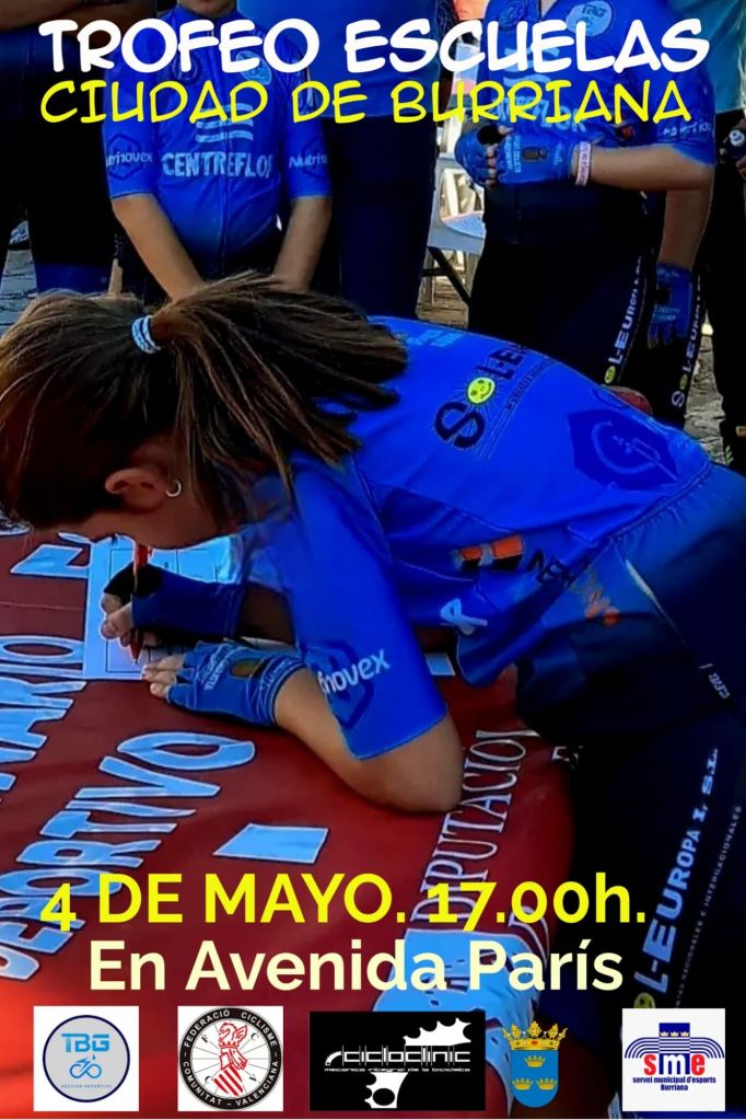 Burriana y Vinalesa acoge esta sábado dos nuevas pruebas de las Challenge de Escuelas de las provincias de Castellón y Valéncia, respectivamente. El Trofeo Ciudad de Burriana dará comienzo a las 17 horas. Llegan como líderes a la cuarta prueba del Torneo castellonense Claudia Vilar (Orbel) y Marc Marín (Orbel) en la categoría Alevín 1; Nuria Amela (Grup Dos Rodes) y Adrián Curiel (Grupo Dos Rodes), en Alevín 2; Ylenia Calau (Vall d´Uixó) y Martín Fernández (Vall d’Uixó), en Principiantes 1; María Casanova (Benicarló) y Héctor Gil (Víctor Cabedo), en Principiantes 2; Alma Martínez (Val D’Uixó) y Marcel Lázaro (Cicloclinic), en Promesas 1; Altea Lazo (Vall d’Uixó) y Daniel Valls (Escole Senglars), en Promesas 2; Balma Tomás (Vall d’Uixó) y Albert Jorqués (Orbel), en Infantiles 1; y Nayara Ibáñez (Orbel) y Álex Beltrán (Vall ‘Uixó), en Infantiles 2.