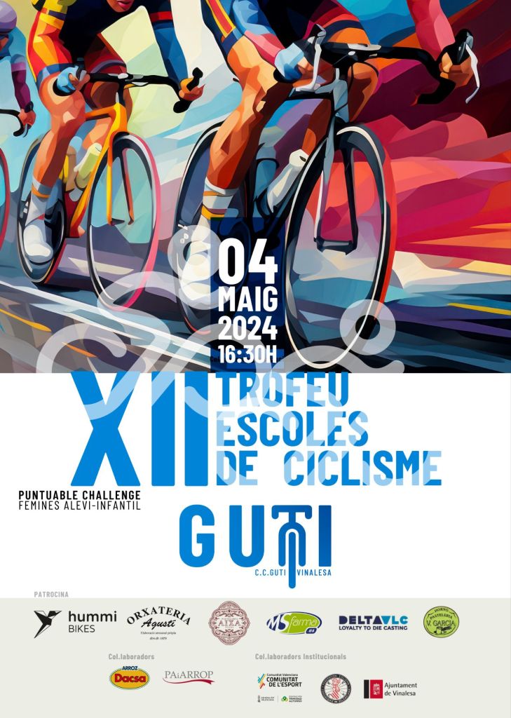 Por su parte, el XII Trofeu Escoles de Ciclismo de Vinalesa comenzará a las 10 horas. Llegan como líderes a la sexta prueba del torneo valenciano Aitana Aguado (Alfafar) y Francisco Miragany (Ikascola), en Principiantes 1; Mar Rubio (Mortesbikes) y Marc Donet (Mortesbikes), en Principiantes 2; Cristián Vercher (La Valldigna) y Abril Padilla (La Forca), en Alevín 1; Jaume Beneyto (Ontinyent) y Naia Martínez (Big Bikes), en Alevín 2; Bernat Pellicer (Big Bikes) y Gala Gómez (Granja Rinya), en Promesas 1; Izán López (La Forca) y Valentina Sanfrancisco (Ikascola), en Promesas 2; Marta Benedicto (Ikascola) y Lucas Jerez (Ikascola), en Infantiles 1; Sara Calatrava (Pinedo) y Nicolás Donat (Ontinyent), en Infantiles 2. Pere Marrahí (Ontinyent) domina la Gymkhana Alevín; Miguel Ángel Langa (Ikascola), la de Principiantes; Izán López (La Forca), la de Promesas; y Carlos Pérez (Granja Rinya), la de Infantiles.