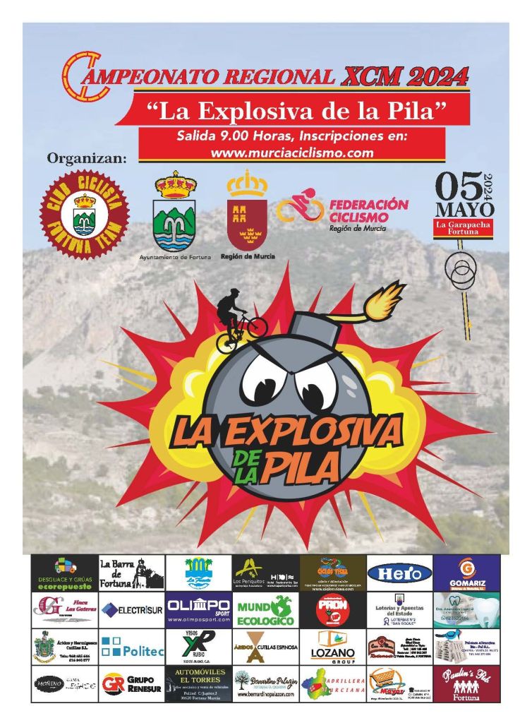 El domingo, día 5 de mayo, a las 09:00 horas desde la pedanía de La Garapacha tendrá lugar el Campeonato Regional de Murcia BTT XCM “La explosiva de La Pila”, organizada por el club ciclista Fortuna Team y en colaboración con la Federación de Ciclismo de la Región de Murcia y el Ayuntamiento de Fortuna.