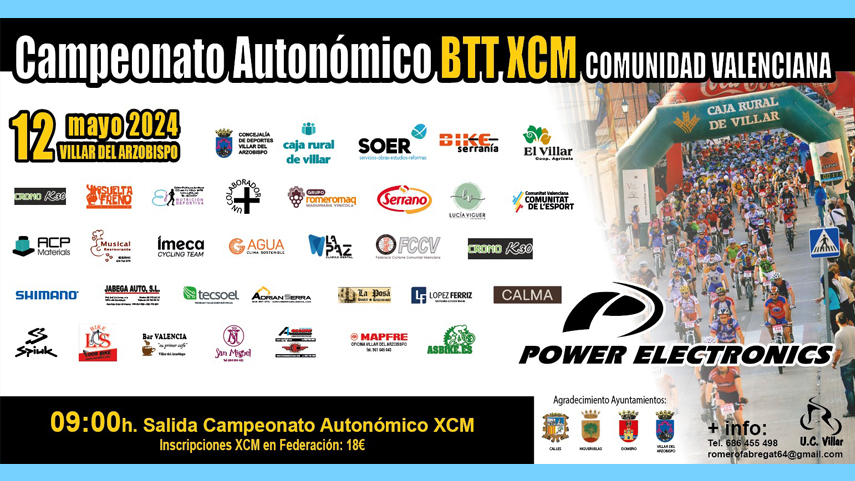 Villar del Arzobispo acoge este domingo, día 12 de mayo, el Campeonato de la Comunitat Valenciana de BTT-Maratón. La pueba constará de un recorrido de 65,30 kilómetros que ha sido diseñado por Unión Ciclista Villar del Arzobispo. La salida se dará a la nueve de la mañana desde el Pabellón Colegio Fabián y Fuero.