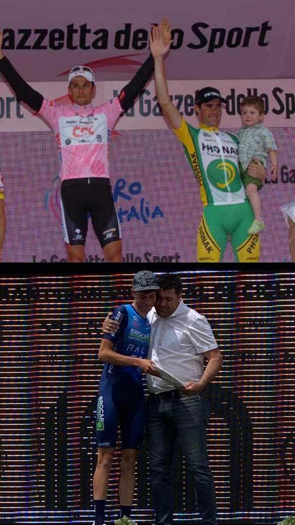 El pasado domingo Ibán Gutiérrez (Brocar Rali Alé) subía al podio como segundo clasificado en la general del Gran Premi Vila-real. En el balcón de los honores tuvo la satisfacción de coincidir en el reparto de premios y maillots con su padre, José Enrique Gutiérrez. Una imagen, que como recordaba en su cuenta de Facebook el exprofesional y actual presidente de la FCCV, se repite 18 años después en un mes de mayo. En aquella fecha coincidieron en Milán, en el podio del Giro de Italia 2006, en la que el entonces corredor del Phonak celebró un merecido segundo puesto con Iván Basso como ganador de la prueba transalpina y Gilberto Simoni (Saunier Duval), tercero. En ese festejo el progenitor tuvo en sus brazos a Ibán, que contaba con un poco más más de dos años, celebrando su éxito. Dos imágenes para el recuerdo, que el primogénito confía en repetir en una carrera como ciclista que está en sus inicios y que en el GP de Vila-real vio recompensado todo el trabajo en la sombra que viene realizando en las últimas campañas. En su caso, debe ser el principio de una gran trayectoria.