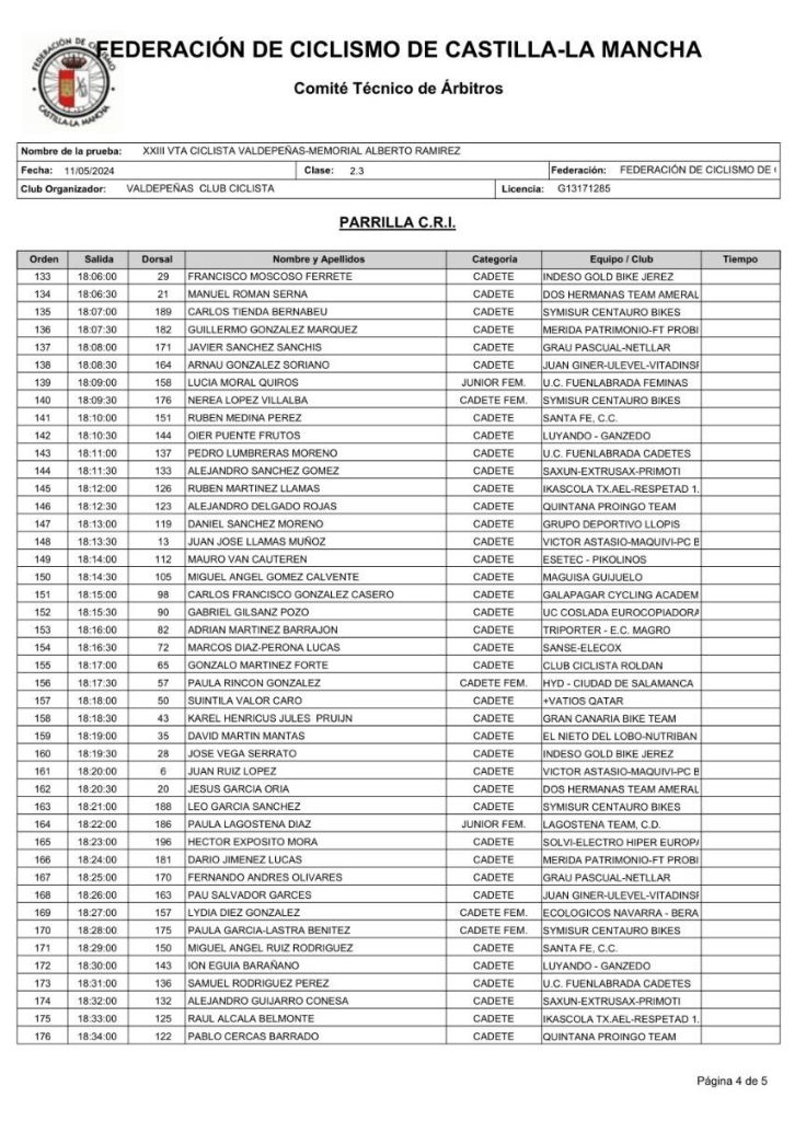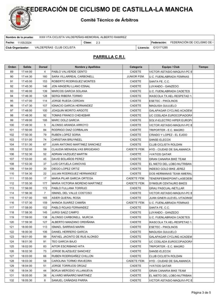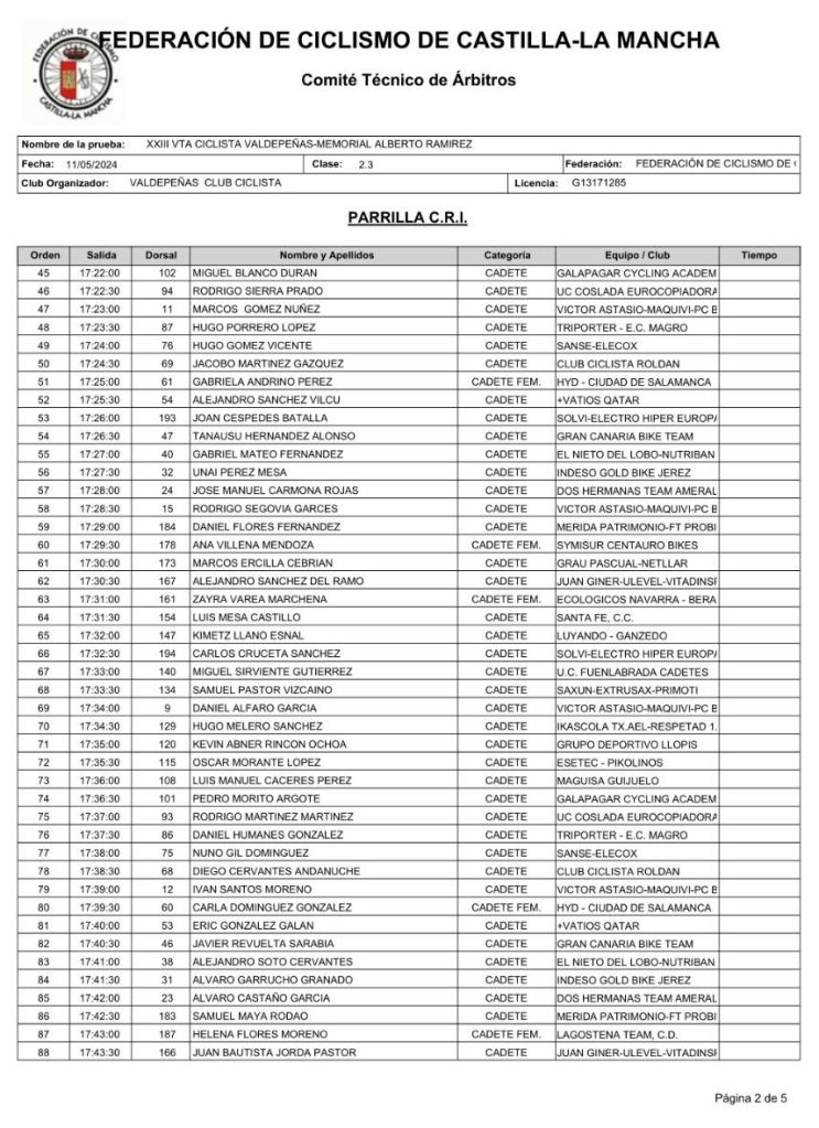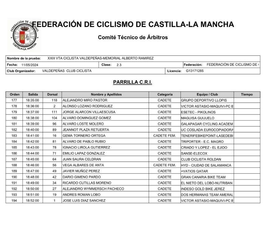 Etapa 1. Sábado, 11 de mayo. CRI. Valdepeñas. 4.5km. 17 h.